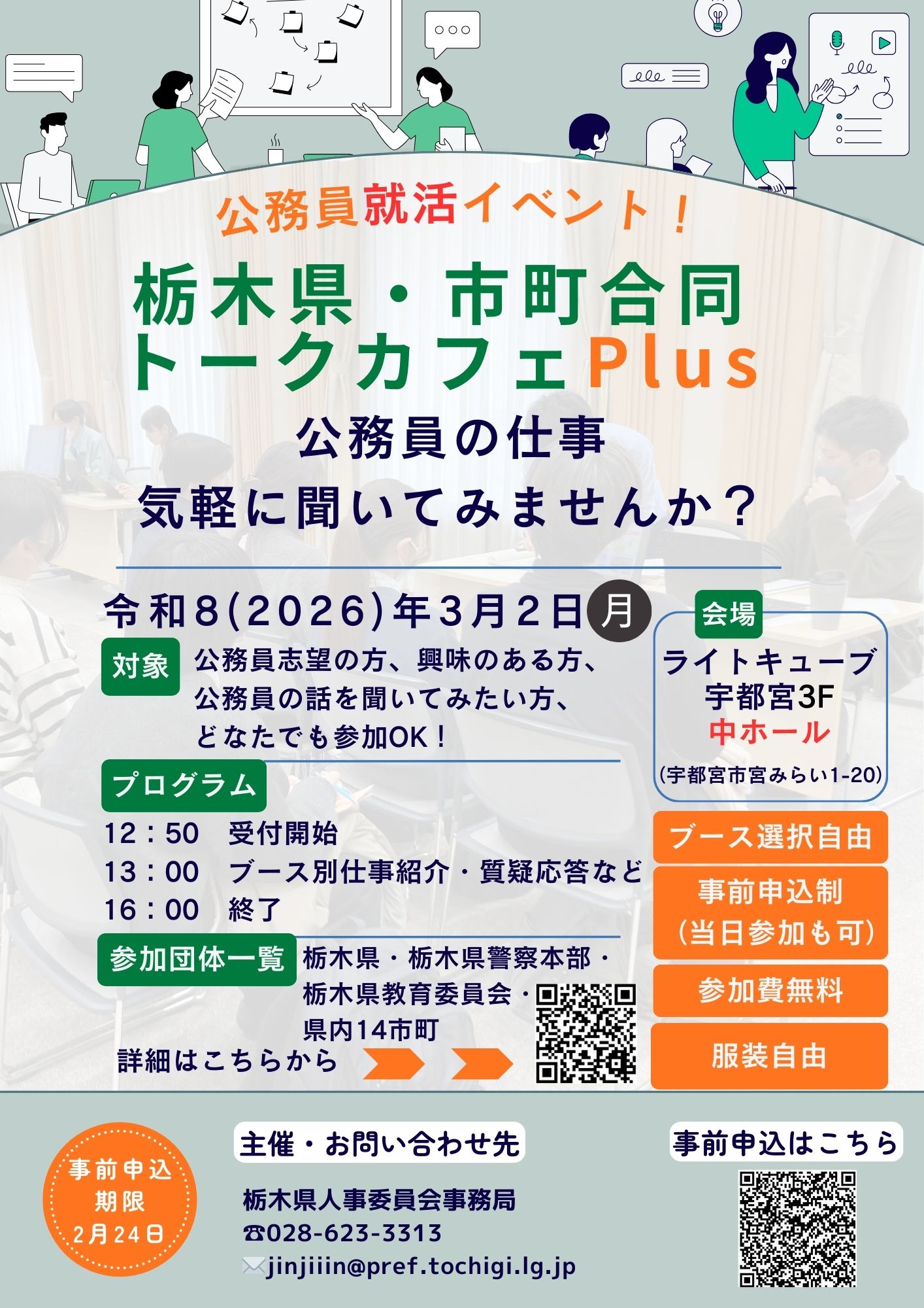 3/2 公務員就活イベント!「栃木県・市町合同トークカフェPlus」を開催します