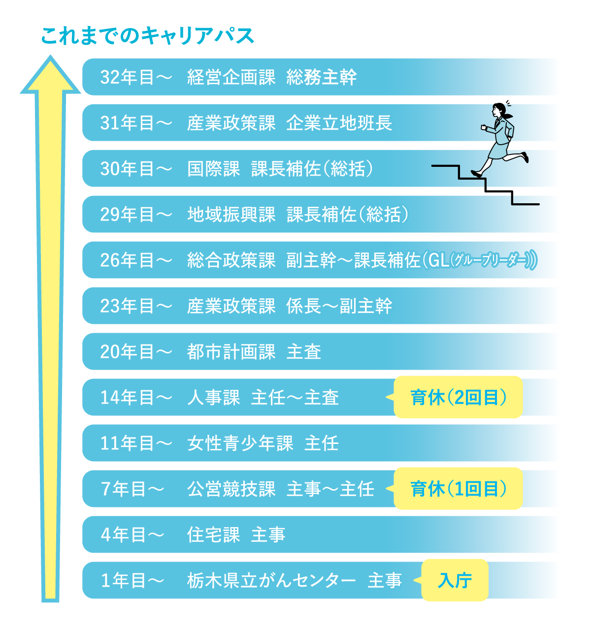 | H30(26~28年目) 総合政策課 役職:副主幹~課長補佐(GL(グループリーダー)) |