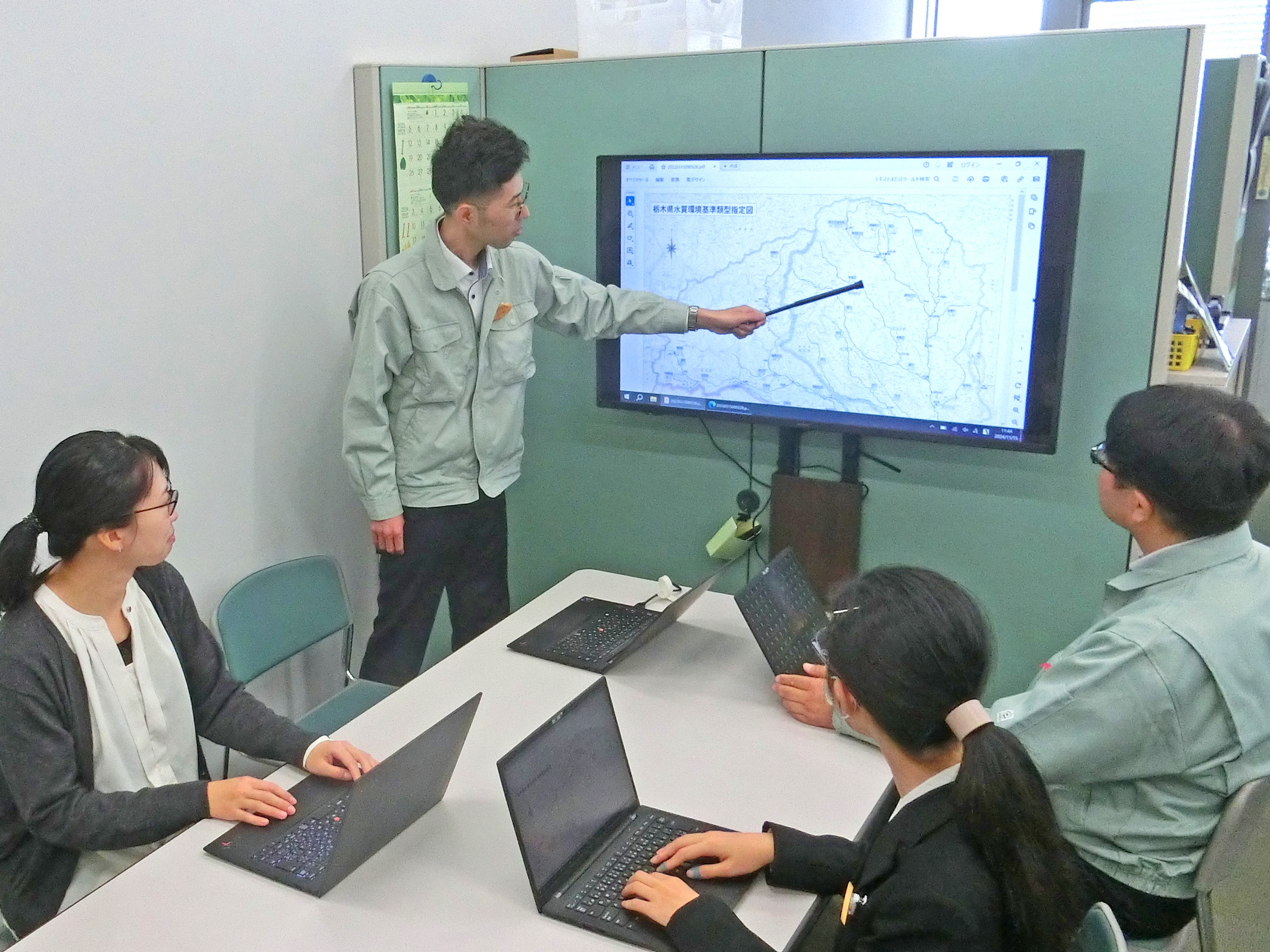 土壌汚染や地下水汚染の対策、これまで規制されていなかった新たな化学物質の対策など、とちぎの環境保全に関する業務を担当しています。具体的には、環境関係法令に基づく事務のほか、県内の河川や地下水の調査計画の立案、調査に必要な予算の確保などを行っています。職場は、職員同士の意思疎通がしやすく、また、上司への相談も気軽にでき、とても仕事がしやすい雰囲気です。困難な業務にも、職員が一体となって対応することができます。